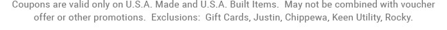 Sale Runs 12/01/25 - 12/08/25 10:59 AM CST. Coupons are valid only on U.S.A. Made and Built Items. May not be combined with voucher offer or other promotions. Exclusions: Gift Cards.